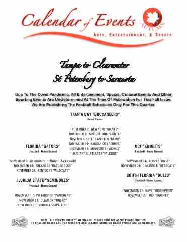 Due To The Covid Pandemic, All Entertainment, Special Cultural Events And Other Sporting Events Are Undetermined At The Time Of Publication For This Fall Issue. We Are Publishing The Football Schedules Only For This Quarter.